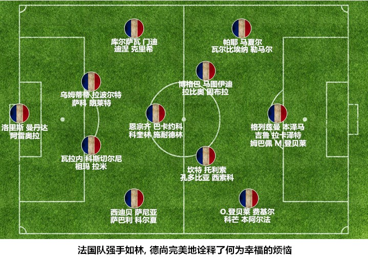 从换上吉鲁砸开了澳大利亚人的铁桶阵,到使用防反战术抵御秘鲁人的短传渗透,从比分落后时沉着应对逆转阿根廷,再到领先后有条不紊地化解乌拉圭的攻势,法国队一路走来取得的进步是有目共睹的,瓦拉内、博格巴、格列兹曼和吉鲁等经历过多届大赛的骨干力量表现出了应有的担当,以帕瓦尔、姆巴佩和卢卡斯-埃尔南德斯为首的年轻球员也都出色地完成了本质工作,德尚对资源的调配和对比赛走势的判断也变得愈发准确。两年前的欧洲杯,德尚足足用了四场比赛才找到适合法国的阵型蓝本(4231),最后决赛的失利证明,这种“以战促战”的冒险策略是不可取的;此番率队征战世界杯,德尚只用70分钟就拨云见日,主力阵容在接下来的四场比赛中完成了快速的磨合,他们已经为最后的夺冠做好了准备,半决赛对阵强敌比利时的比赛可谓是提前到来的的决赛,这正是他们全面展示自身潜能的最佳时机。