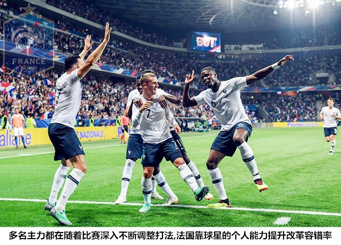 从两队在此前五场比赛中的表现来看,他们的表现与人们的预期还有差距。法国队的问题是中场组织不够细化,前场进攻输出时断时续,欧洲杯时期的双核博格巴&格列兹曼状态都不太理想。德尚历时半年打造的无锋阵,就是为了提升球队的压迫和快攻能力,可惜的是,由于奥斯曼-登贝莱表现不达标,德尚被迫在小组首战下半场仓促重启中锋阵。基于稳固防守的考虑,德尚并没有在接下来的比赛中全力围绕中锋完善阵地战法,锋线三叉戟之间运动能力和球路差距略大,这在一定程度上影响了球队的反击效率。