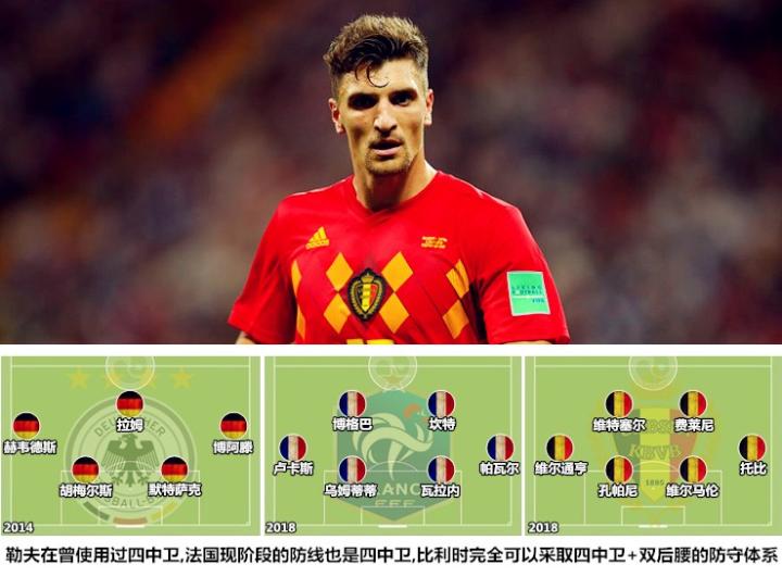 相对于如何使用沙兹利、费莱尼和登贝莱,右后卫的人选反而没有太多悬念。在比利时本届世界杯23人大名单中,正印的边后卫只有穆尼耶一人,大巴黎后卫遭遇黄牌停赛,能够客串两闸的只有维尔通亨和阿尔德韦雷尔德,罗伯托-马丁内斯在对阵巴西的最后时刻换上维尔马伦,或许就是红魔即将使用四中卫的信号。在上届世界杯1/8决赛时阶段,德国对阵阿尔及利亚的比赛中排出了四中卫,勒夫的激进战法令默特萨克和赫韦德斯等人如临深渊,罗伯托-马丁内斯应该从中吸取经验。