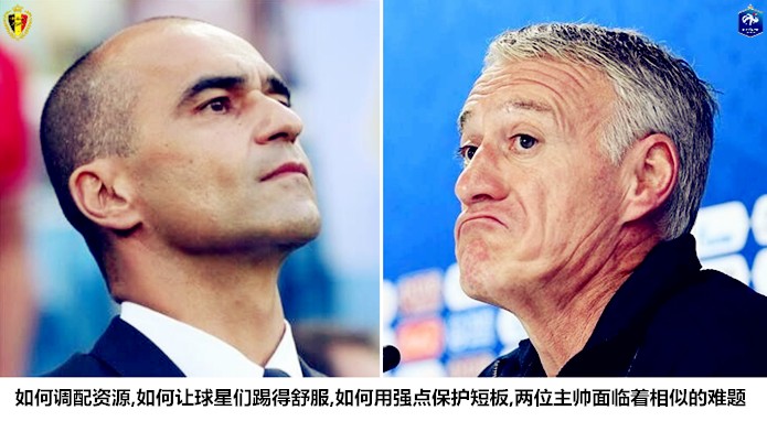 刘强专栏豪阵对决,球星团战,法国与比利时之间的对决尚未开打便已经引爆了网络,各种预测和分析更是激发了球迷们无限的遐想。法国和比利时在人员结构方面有很多相似之处,德尚和罗伯托-马丁内斯各自手握百年队史中最具天赋阵容,两支球队在晋级的过程中都曾交替使用控球与防反战术,战略层面的灵活与善变大大拓展了他们实力的外延,无限星光之下隐藏的是难以捉摸和掌控的战术魔方。两支球队如何高效利用对手“馈赠”的球权,他们在压上进攻时的兵力投入度如何,高大中锋和多功能中场的角色如何界定,都是影响这轮对决的关键因素。