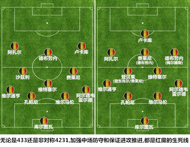 得益于阿扎尔和德布劳内的强势发挥,比利时在中场推进环节的短板一直没有暴露出来。比利时的几名大牌后卫都不具备带球推动进攻的能力,受迫性传球的到位率也不够理想,维特塞尔优势是接应和分球,持球摆脱和向前的工作基本上由德布劳内来完成。考虑到法国队在中前场绞杀环节的表现比巴西更加犀利,比利时必须有其他的球员为德布劳内分担压力,阿扎尔过多的回撤接球只会加剧卢卡库拉边后中路空虚的问题,在近一年来逐渐淡出主力阵容的登贝莱或许是个不错的选择,蒂莱曼斯和登东克尔也都是可以和维特塞尔进行搭档的人选。