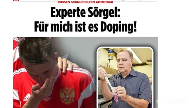 德国《图片报》此前在报道中曾宣称,多名俄罗斯球员在周六的比赛前揉鼻子的动作就是他们习惯性吸入氨气的证明。该报还引述一位业内人士的评论,认为虽然氨气不在足球禁用品列表中,但它给运动员带来了身体机能的提升,也属于作弊。此外,德媒还提到了俄罗斯与西班牙的比赛。