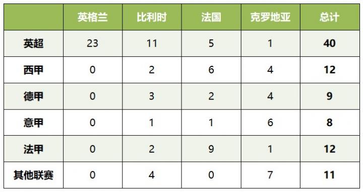 英超Big5四强球员分布: