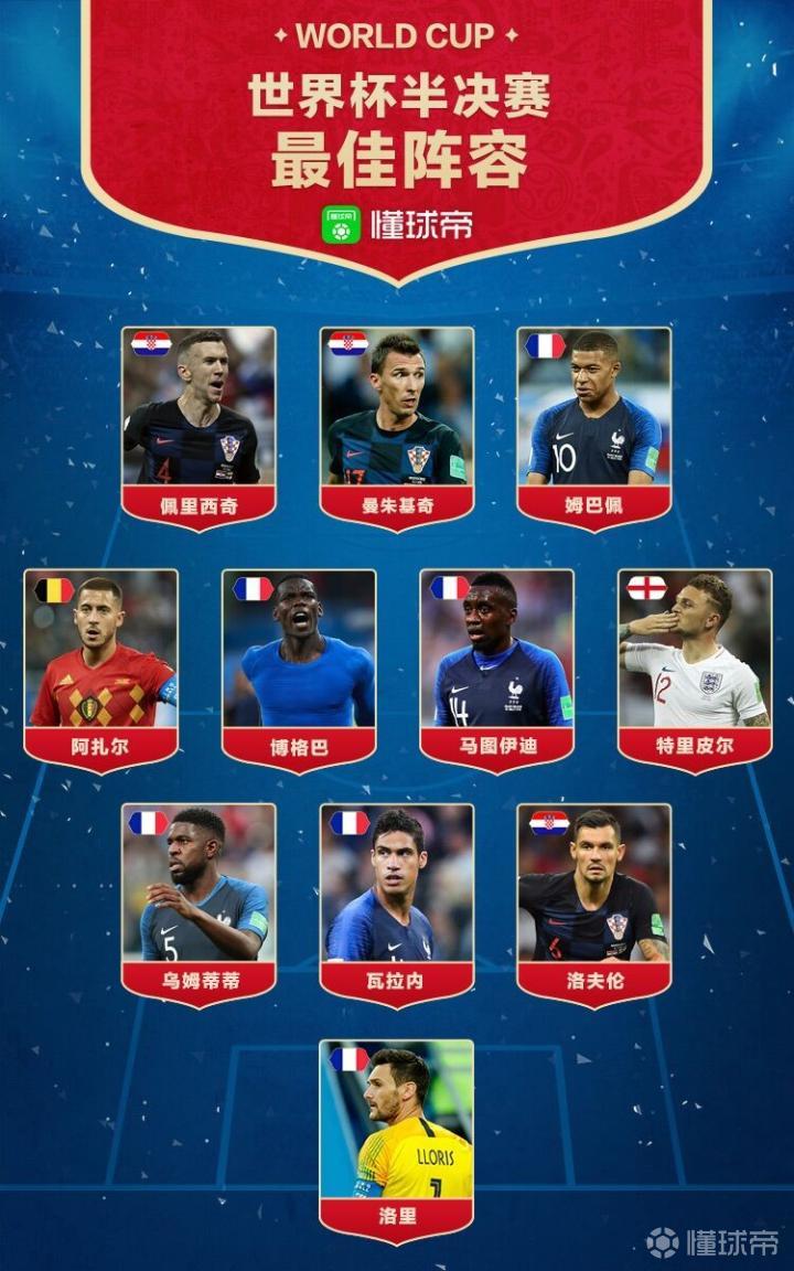 懂球帝世界杯半决赛最佳阵:法国六将齐上榜,扎球王虽败犹荣
