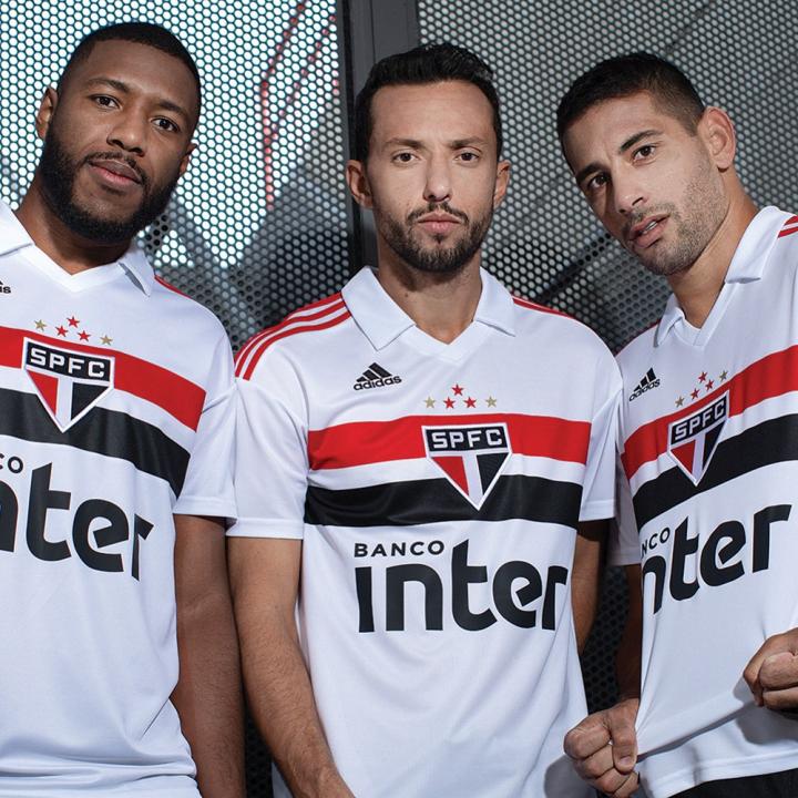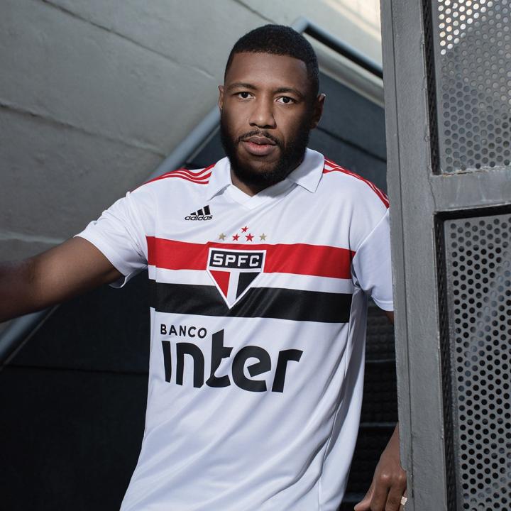 圣保罗全新主场球衣延续了白色球衣搭配横穿球衣中不红白黑三色横纹的经典设计,并且搭配一个复古感十足的白色翻领,让人不禁想起那支在上世纪90年代叱咤巴西以及世界足坛的冠军球队。红色阿迪达斯胜利三条纹出现在球衣肩部和衣袖上,让新球衣的复古感觉进一步加深。