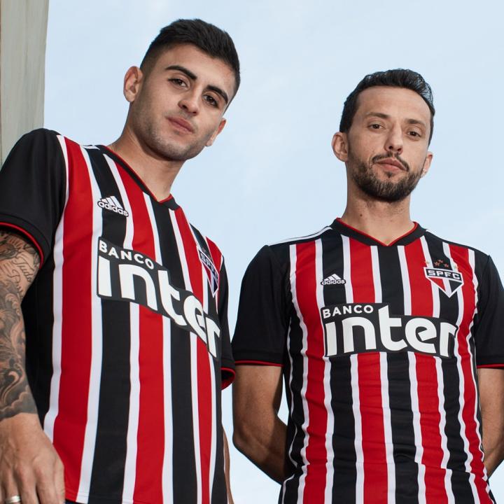 全新圣保罗客场球衣则由源自球队队徽的红白黑三色竖条纹组成,球衣背后则采用大面积黑色设计以突出球衣号码和球员姓名。一个经典的黑红两色EQT衣领让这件客场战袍更显复古,球衣肩部加入白色阿迪达斯胜利三条纹则进一步增强客场球衣的经典风范。