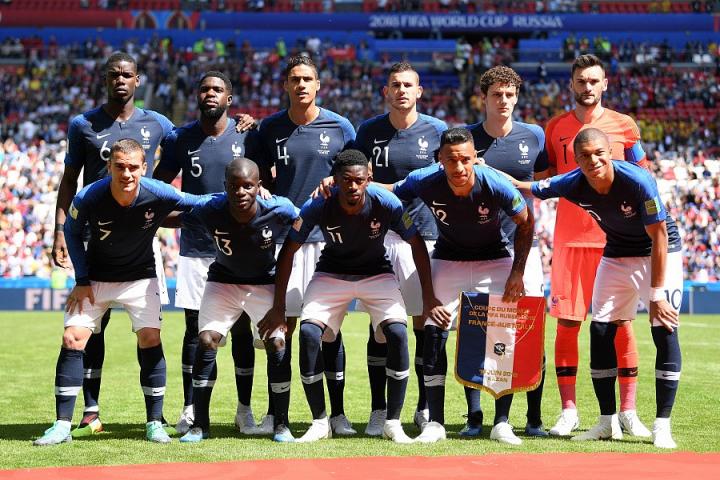阵容:洛里/帕瓦尔,瓦拉内,乌姆蒂蒂,埃尔南德斯/托利索(78'马图伊迪),坎特,博格巴/姆巴佩,格列兹曼(70'吉鲁),登贝莱(70'费基尔)