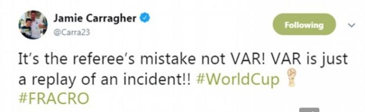 天空体育评论员卡拉格则表示:“这个错误在于裁判,不是VAR。VAR只是一次视频回放而已!”