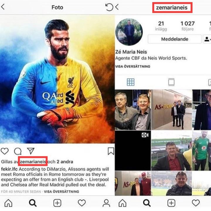 世界杯结束后,媒体又传出利物浦求购罗马门将阿利松的消息,并称红军已经送上了7000万欧元的报价,以解决球队下赛季首发门将的问题。而此时阿利松的经纪人内伊斯在INS上的一个举动让人引发了猜测。