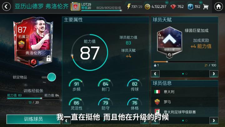 而罗马边翼卫佛罗伦齐则是29老师阵容中的挚爱。首先从能力上来说他进可攻退可守,非常全面与均衡,能完美适用多种不同打法;而他的获取方式也相对简单,通过绿茵巨星模式即可获得,对于新手玩家是不可多得的补强“万金油”。