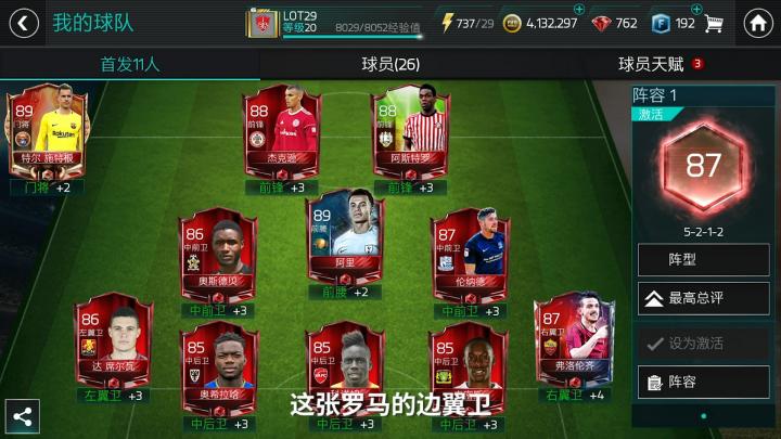 正如我们刚才所说,29十分喜爱弗洛伦齐这张卡,因此他选择的阵容是非常适合边翼卫发挥能力的532,这套阵型的防守也相对稳健,非常适合玩家们在开荒阶段使用。