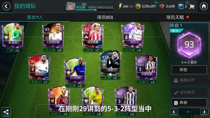 而主持人CC为大家带来的阵型则是FIFA足球世界中相对主流的中场菱形站位343,这套阵容的优势在于养成,在游戏初期玩家们可以相对容易获得的C罗、格里兹曼、勒马尔以及阿里四位球员都可以有施展的空间,看着他们伴随你的阵容一点点成长起来,不也是一种乐趣吗?