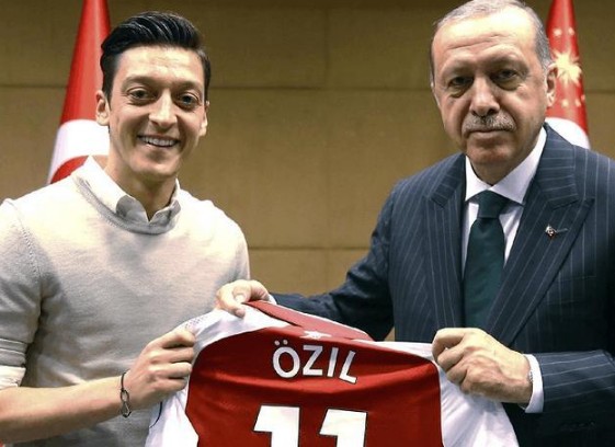 这场被厄齐尔称为“有关慈善和教育的活动”发生在5月14日埃尔多安访问英国期间。此时,埃尔多安在位于伦敦的大使馆同时接见了三名球员——厄齐尔、京多安以及效力埃弗顿的托松。通过合照可以看出,这三名球员与埃尔多安的见面绝非偶遇,他们各自向埃尔多安赠送了一件自己的俱乐部球衣,而京多安的球衣上甚至写着:“向我的总统致以敬意!”