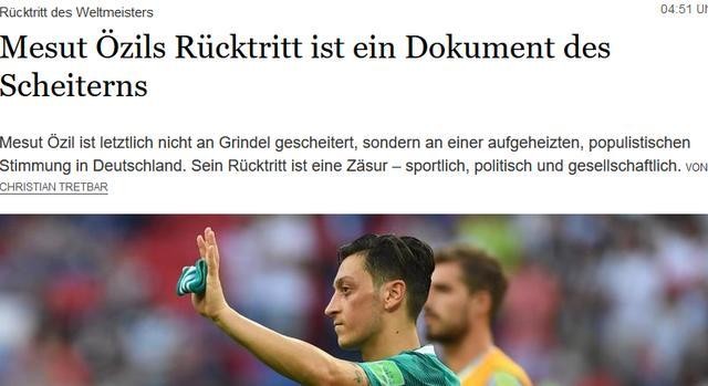 就是这样,厄齐尔在德国国内引发的众怒远超过我们的想象!这就像一位在大陆备受推崇的港台艺人,回家后却与港独(台独)敌视分子见面合影,试问你能接受得了吗?这样的比喻或许有些偏激,厄齐尔也称本意并非如此,但是德国人依然认为除非厄齐尔幼稚到了极点,否则他的行为已经触犯了德国主流民意的底线——除了合影刷爆各大头条,更是点燃了媒体和民众的怒火,《明镜》周刊用了“愚蠢”一词来形容这个行为,而《世界报》的调查显示过半数德国人拒绝二人继续为德国队效力。