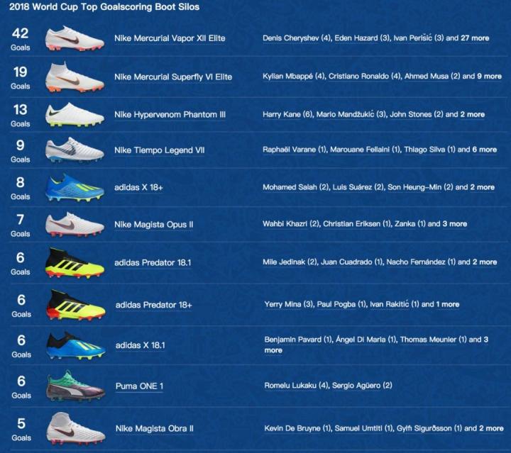 在球衣销量的战场之外,与球员表现和数量直接挂钩的足球鞋产业,是竞争最为激烈的。