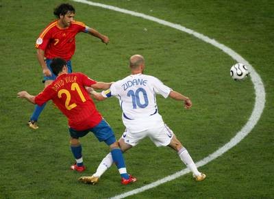 06年世界杯,小组赛三战全胜的西班牙,八分之一决赛1:3不敌法国,早早出局。