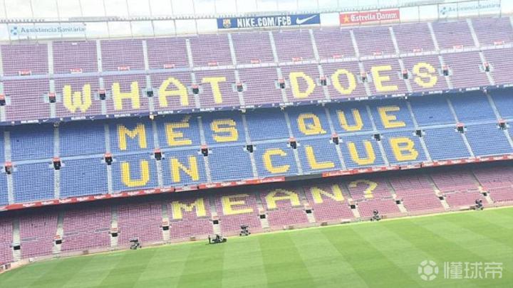 原先看台上的“不仅仅是一家俱乐部”变成了“不仅仅是一家俱乐部的意思是什么(What does més que un club mean)”,新添加的单词是英语。