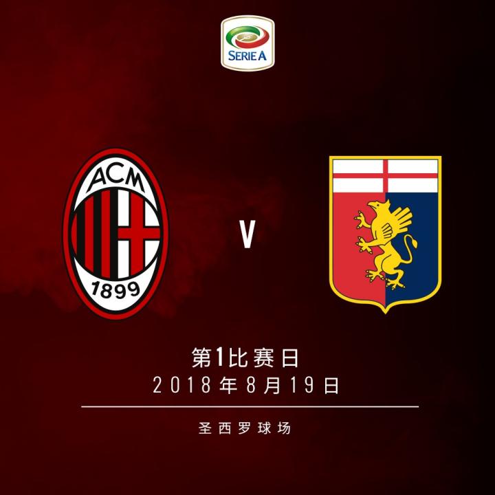 第1轮:2018年8月19日,AC米兰 vs 热那亚