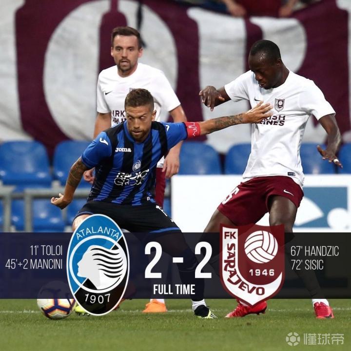 托洛伊和詹卢卡-曼奇尼在上半场帮助亚特兰大取得了2-0的领先优势,但是萨拉热窝在下半场连扳两球扳平比分。