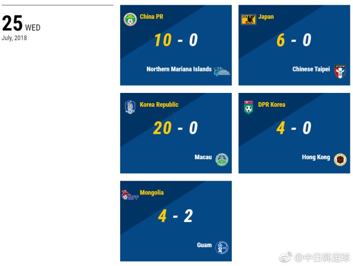 在已经结束的三轮比赛中,中国U15国家队先后0-2不敌日本、10-0大胜北马里亚纳群岛、5-0大胜蒙古,总成绩暂时为2胜1负。