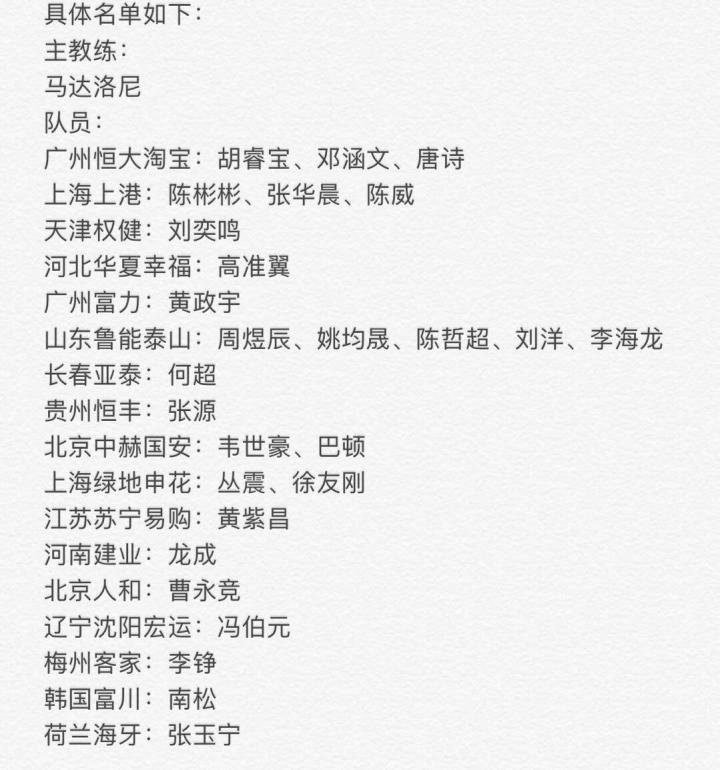 与此同时,先前大名单中的幺旭晨和陈国良从名单中落选(陈国良补充进入了山东鲁能U19大名单)。