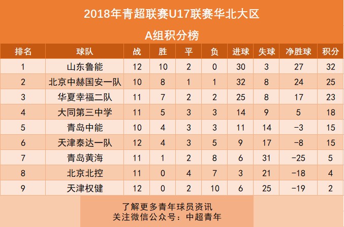 七、青超联赛U17联赛战报:一方鲁能苏宁各自领跑。