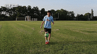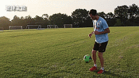 这个要更难一些,你需要用脚外侧将球颠起,开始你不必非要连续用脚外侧颠球,可以先正常颠球几下然后脚外侧颠球,让身体先找到协调性,熟练后再脚外侧连续颠球。