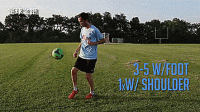 接下来先用脚颠球,然后再用肩膀颠球,这个可以帮助提高你的触球和控球,因为要想恰好踢到肩膀上就必须把握好踢球的力度和高度。脚和肩膀颠球总共做100次。