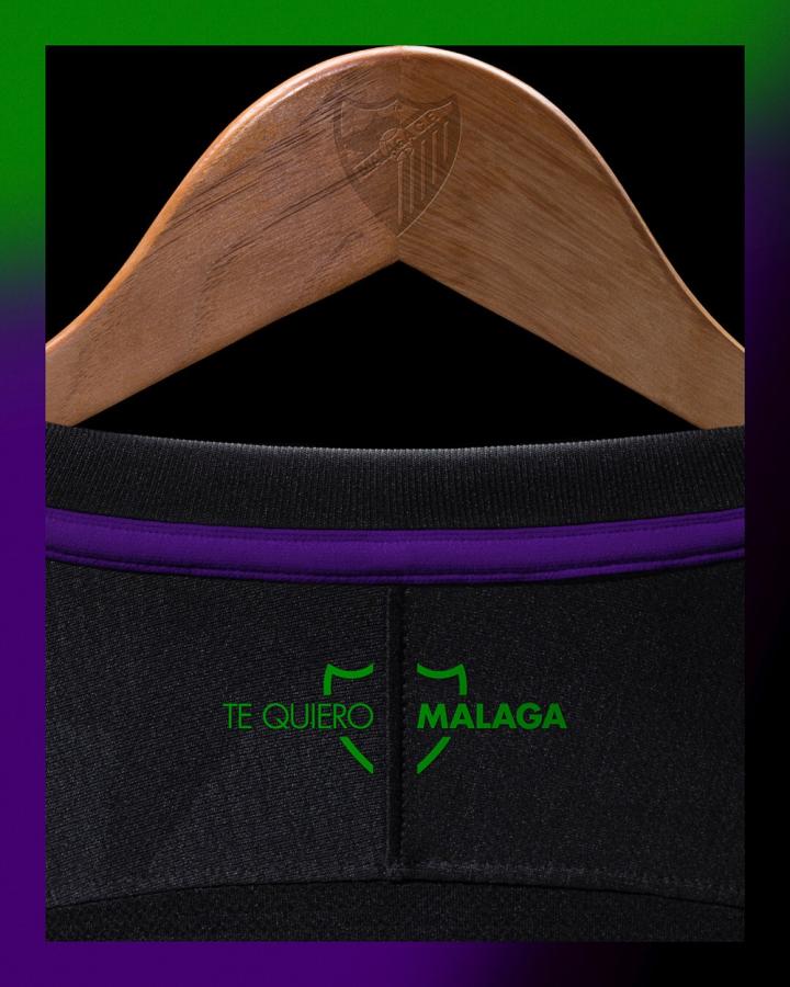 客场球衣拥有一个带有纽扣的门襟式衣领,作为马拉加这座城市象征的紫色条纹环绕着衣领。球衣背后衣领下方加入一枚象征等她的明灯图案,并附上“Te Quiero Málaga”(我爱你,马拉加)的新赛季口号,展现出球迷们对球队和城市的热爱。