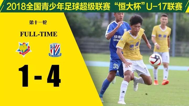 青超U17第十一轮战报:上海申鑫1:4不敌上海绿地申花