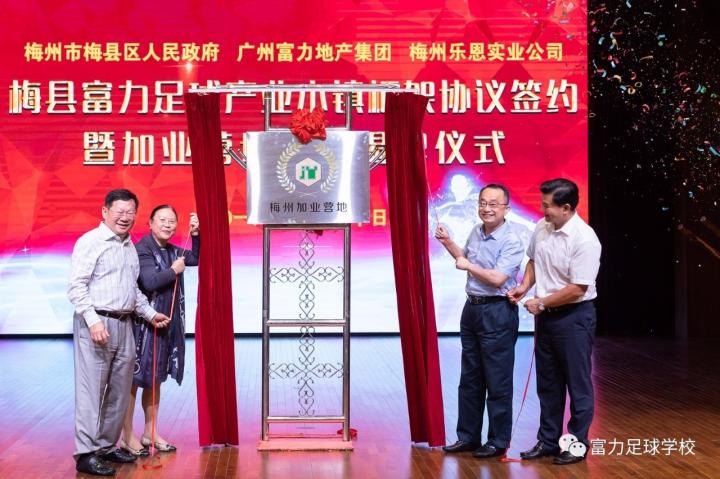 7月30日上午,“梅县富力足球产业小镇框架协议签约暨加业营地揭牌仪式”在梅县区雁洋镇加业营地举行,梅州市委副书记、市长陈敏、梅州市政府秘书长、办公室主任林健雄、梅县区委书记钟光灵、富力集团联席董事长兼总裁张力、梅县爱心文化协会、加业营地创始人廖冬芬女士、富力足球俱乐部副董事长黄盛华、足球俱乐部常务副总经理兼富力足球学校校长洪友强及梅州市、县(区)、富力地产集团等领导出席活动。