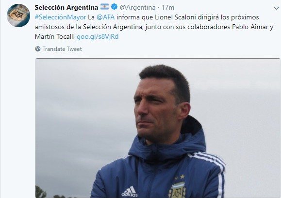最新消息,阿根廷足协在其官方推特上宣布斯卡罗尼将作为临时主帅指挥阿根廷国家队的下一场友谊赛,他的助手是艾马尔和马丁-托卡利。他们将会带队至少到12月份,届时阿根廷足协希望选出新的国家队主帅。