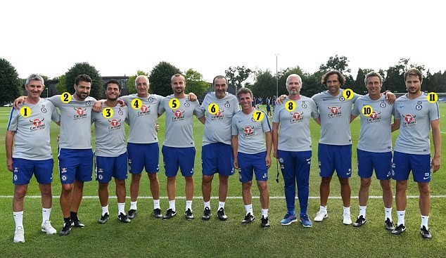 图中人物名单(L-R): Gianni Picchioni, Massimo Nensi, Davide Losi, Davide Ranzato, Marco Ianni, Maurizio Sarri, Gianfranco Zola, Paolo Bertelli, Luca Gotti。两位守门员教练也是前切尔西球员,分别是恩里克-希拉里奥、卡洛-库迪奇尼。