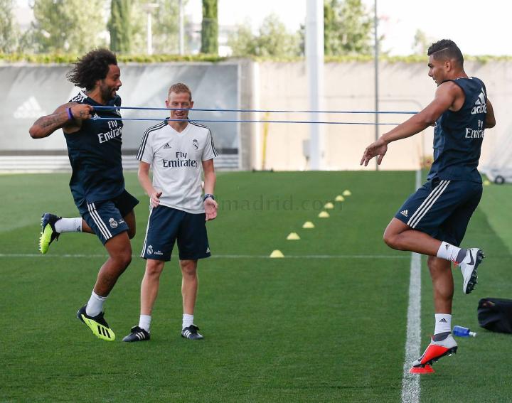 马塞洛和卡塞米罗已经回到皇马展开季前训练,他们跟随体能教练一起训练,而今天在训练场上,新加盟的助教塞拉德斯成为焦点。