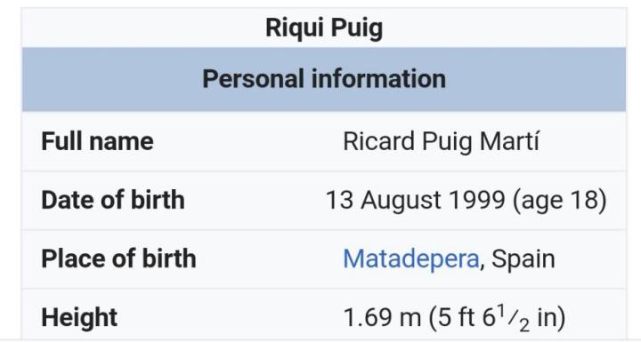 Ricard Puig Martí,出生于1999年8月13日,身高1.69米,司职中场。这是维基百科上关于这名小将的基本介绍。