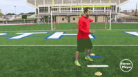 练习者侧向面对任何一方,假设自己和球门之间的这个标志碟为盯防自己的防守球员。