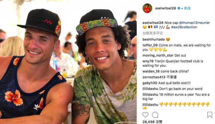 (图)权健在中超战绩不佳之际,维特塞尔却仍在度假,对于球迷的询问,比利时人没有回复
