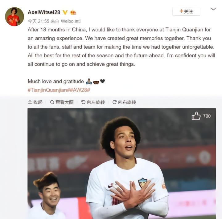正所谓“只闻新人笑,哪见旧人哭”,多特蒙德官宣维特赛尔之后,这边厢大黄蜂球迷一片欢呼雀跃,那边厢天津权健只得吞下强援流失的苦果。而作为权健球迷,最让他们不能接受的不是维特赛尔转会而导致球队实力下降,而是世界杯前夕,为了让球员更好的备战世界杯,天津权健允许维特赛尔提前离队,而世界杯结束后,球员并未在规定的时间8月5日归队,球迷们左顾右盼,只是等来了多特蒙德的官宣消息。最让球迷们接受不了的是,球员本人在世界杯结束后的休假期间完全没有透露过自己将要离队的消息,甚至连回到中国与热爱他的球迷告别一声都没有,就这样“不辞而别”,正因这样,在转会官方宣布之后,维特赛尔在个人社交媒体上与权健告别,球迷们却并不买账。