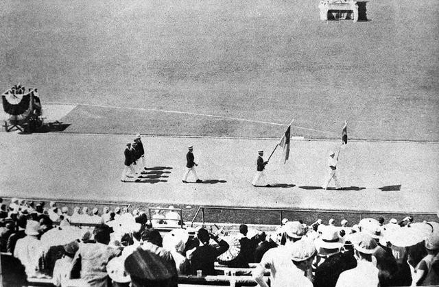 ①1932年,美国洛杉矶第10届奥运会开幕式上,中国唯一的选手刘长春高擎国旗入场。新华社稿