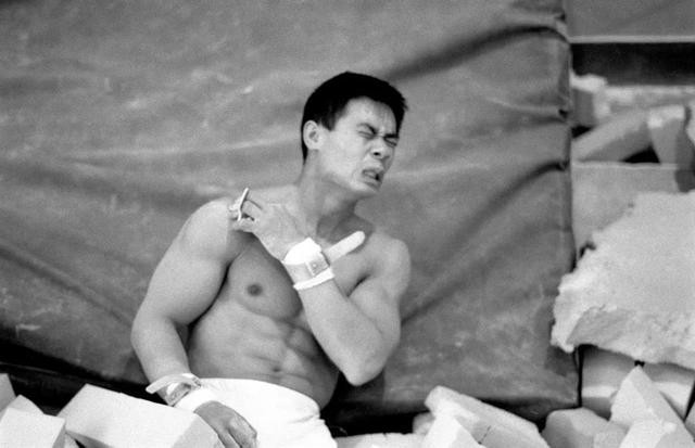 ⑳1988年3月,“体操王子”李宁在北京训练。伤痛无时不在折磨他。新华社记者 官天一 摄