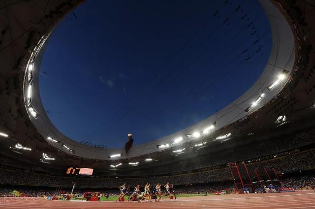 ㉑2008年8月15日,在国家体育场“鸟巢”,北京奥运会田径比赛拉开帷幕。这是选手们在男子1500米预赛中。新华社记者 郭大岳 摄