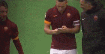 (图)托蒂一定是个自拍狂魔,球场上都不忘拿手机嘟嘴自拍发朋友圈。