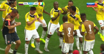 (图)世界杯上哥伦比亚刮出一股青春风暴,他们的集体舞更是成为一道亮丽的风景。