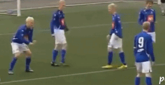 (图)冰岛球队斯塔尔南以创意的庆祝动作而闻名足坛,看他们的人体马桶,多么逼真。