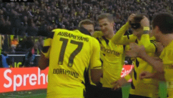 (图)这个蝙蝠侠+罗宾的庆祝让人眼前一亮,但结果是奥巴梅杨为此吃牌,而罗伊斯没有。