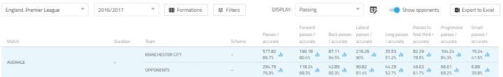 (图)近两个赛季曼城联赛场均传球表现