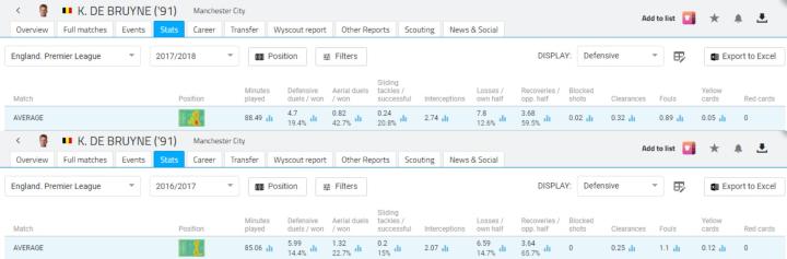 (图)德布劳内上赛季防守表现