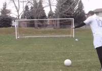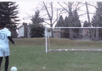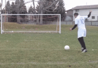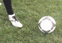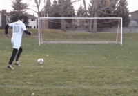 吊射的种类较多,可以用正脚背或长传的方式,在门将站位靠前时,开出高球,吊过掉守门员进球。这里采用脚背靠前的位置吊射,击球的底部。