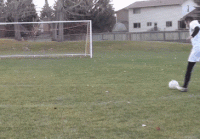 踢球时,斜线助跑,支撑脚一大步前跨到球的一侧,击球腿大腿向后微摆,小腿大幅度后摆,脚面向下绷紧。而后,支撑脚膝盖略微弯曲站立,顺势摆动击球腿来发力,使绷紧的正脚面充分接触到球,将球击出。