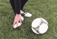 刚开始,可能不习惯发力方式。需要多加练习。如果脚部力量不足或为弱势脚,可以选择将脚面向内侧微微翻转,并绷紧脚面。以获得更大的触球面积。